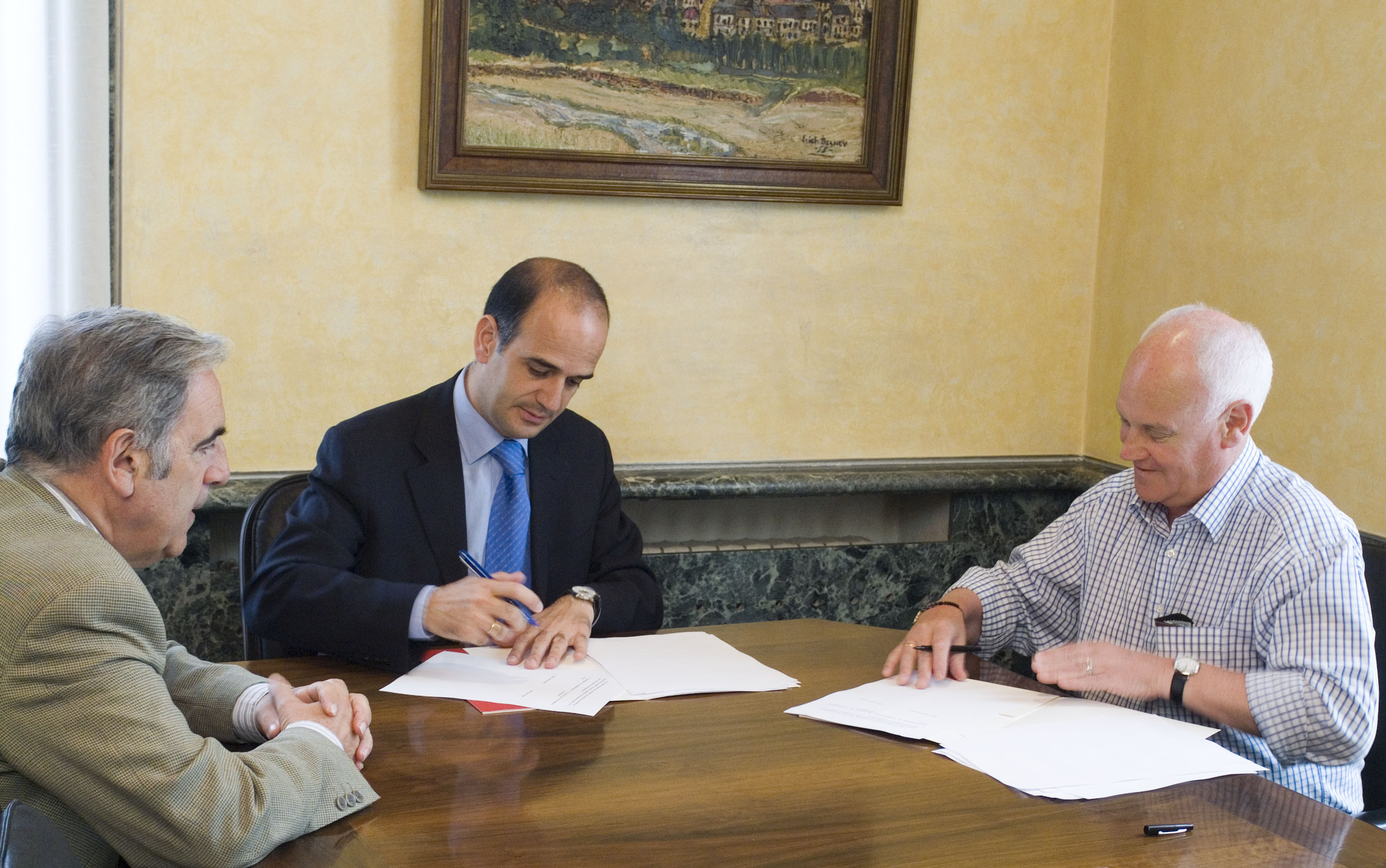 miércoles, 28 de junio de 2006El consejero de Administración Local, Alberto Catalán Higueras, y el alcalde de Ansoáin, Alfredo García López, han suscrito esta mañana un acuerdo para establecer las condiciones de la colaboración mutua que permitirá la implantación del Proyecto de Ciudad Digital en este municipio.