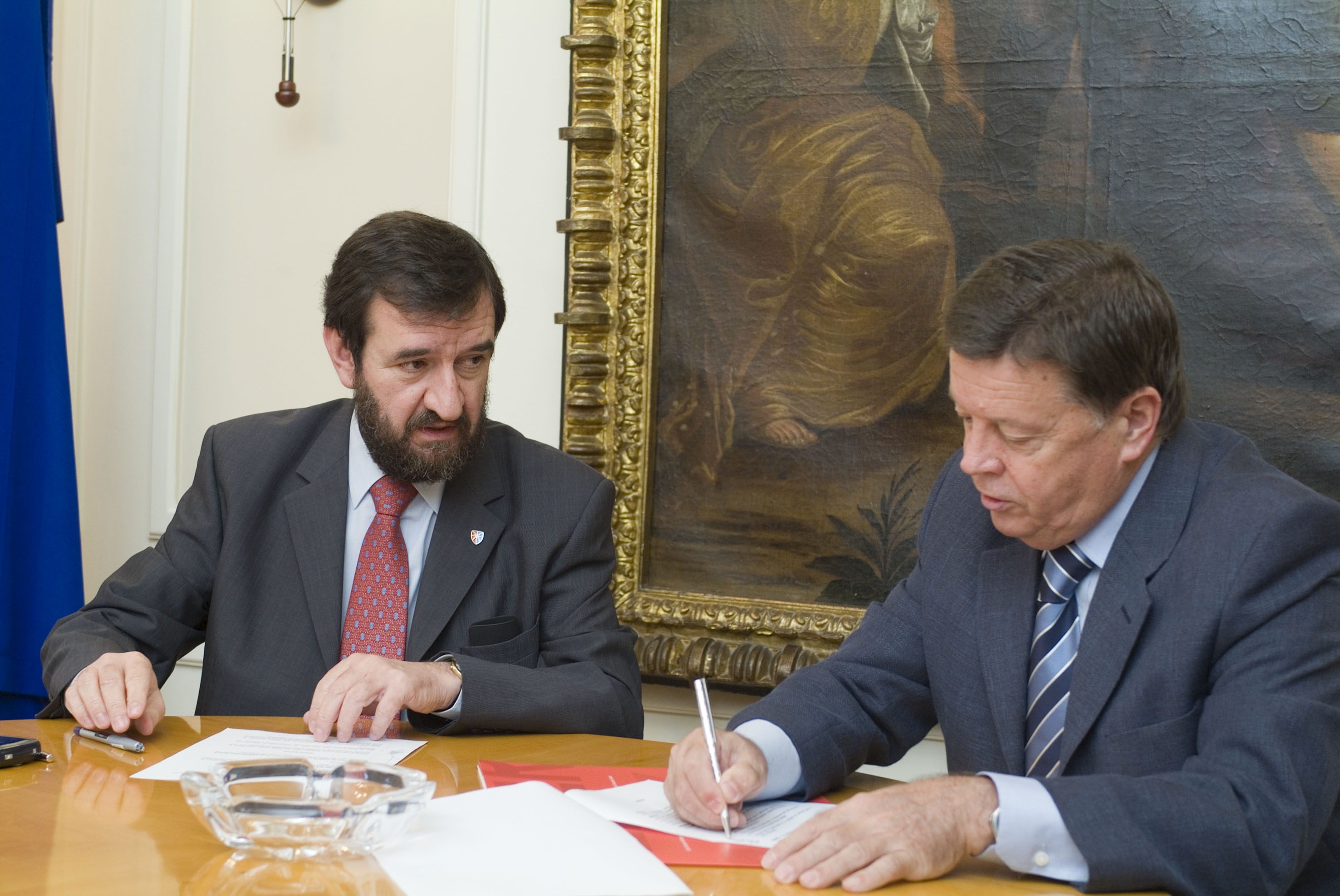 El consejero Corpas y Ángel María Ansó, de NH Hoteles, firman el convenio de patrocinio.(ampliar imagen)
