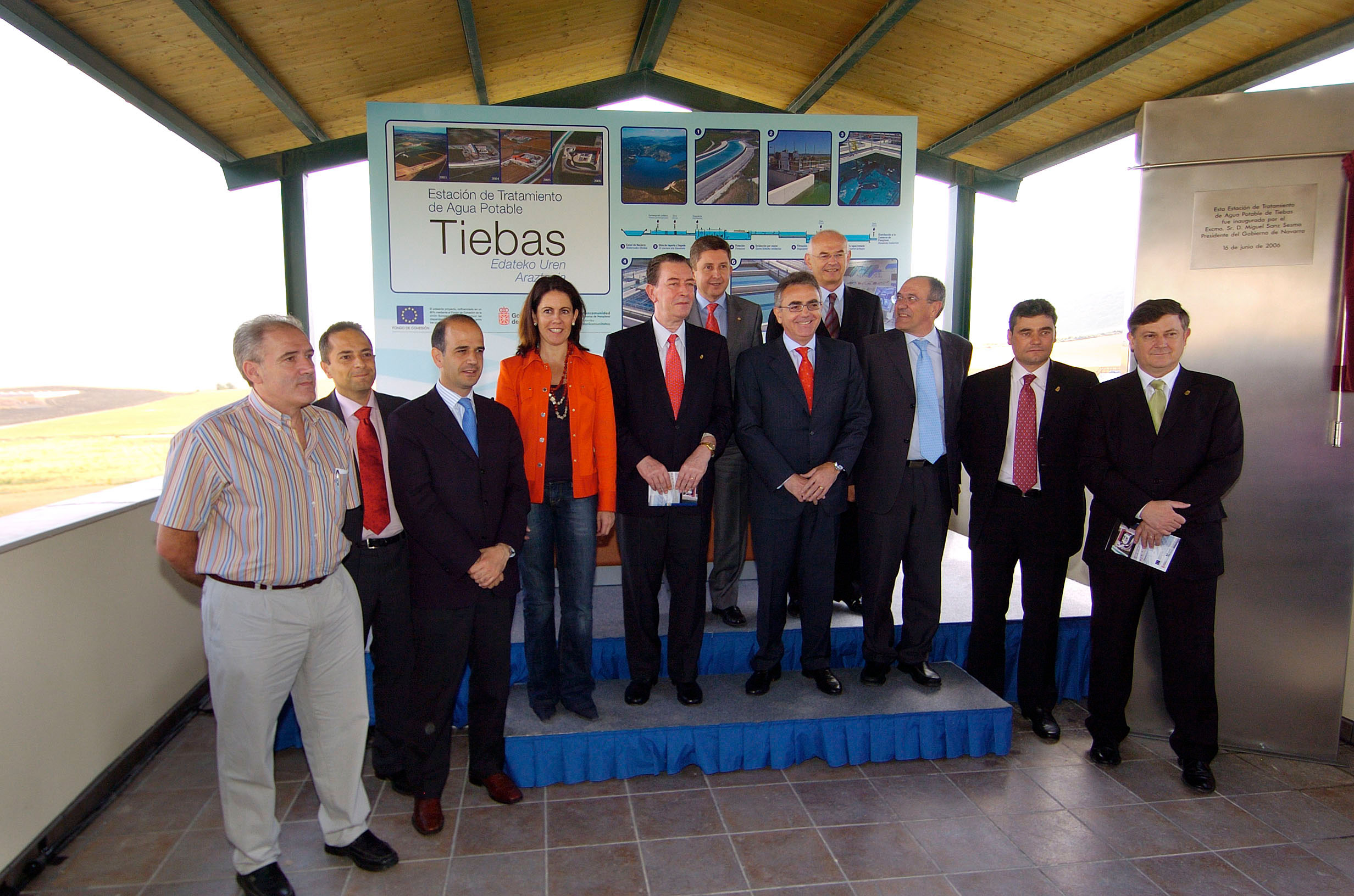 El Presidente del Gobierno de Navarra, Miguel Sanz Sesma, ha asistido esta mañana a la inauguración de la Estación de Tratamiento de Agua Potable (ETAP) de Tiebas y al acto oficial de la llegada de agua de Itoiz a la Comarca de Pamplona, que ha tenido lugar en los depósitos de Mendillorri.