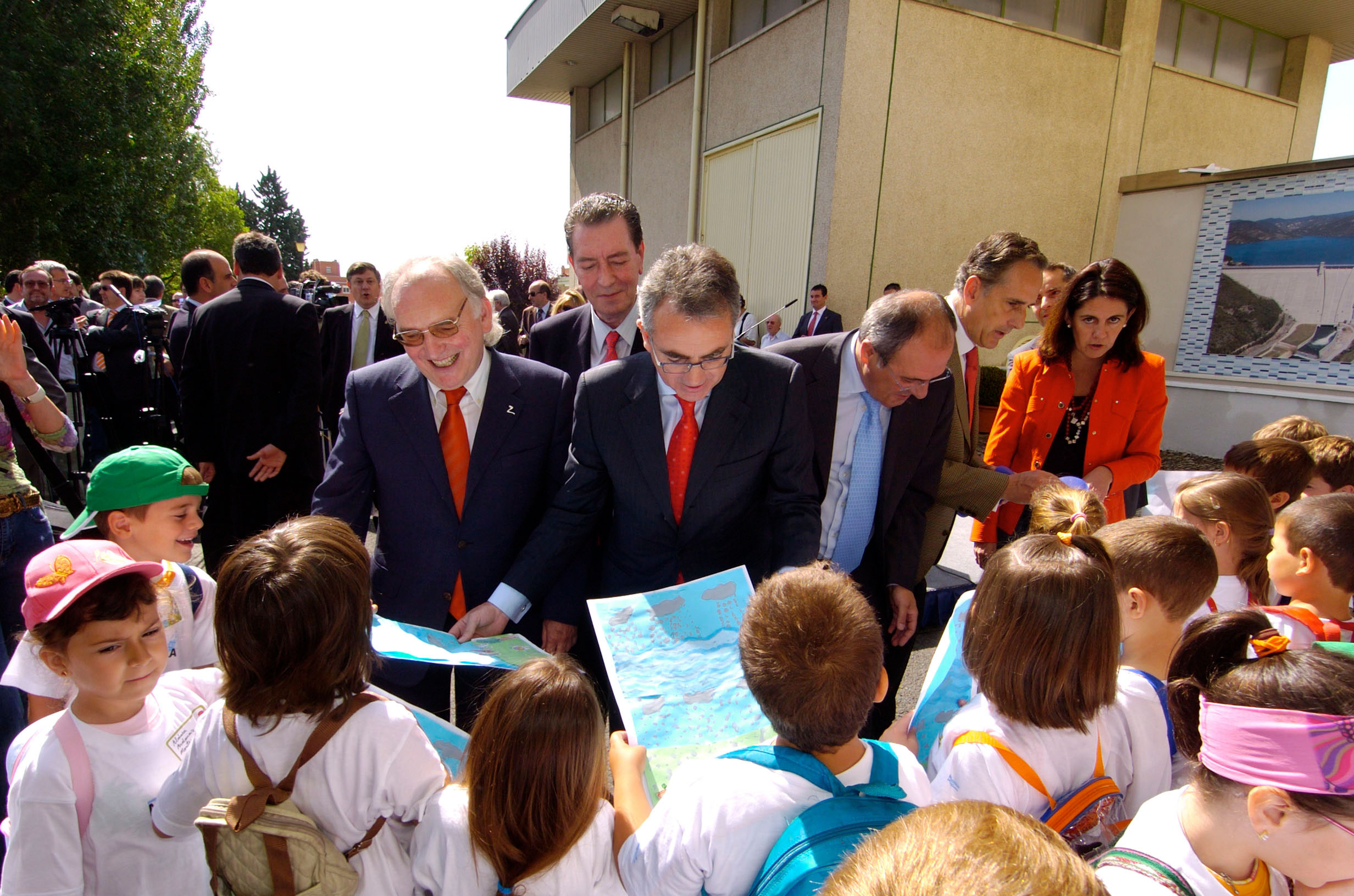 Y a un grupo de niños que estaba presente allí, se ha dirigido en los términos siguientes: "también os quiero decir que cuando seáis mayores, os acordaréis de haber estado hoy aquí, y que cuando abráis el grifo de la dicha o cuando os bañéis en la piscina os acordéis de que el agua hay que cuidarla, que no hay que malgastarla, y que cuidar el agua es cuidar toda nuestra naturaleza".