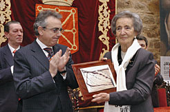 El Presidente Sanz con la viuda de José Luis Prieto, que fue Jefe de la Policía Foral.