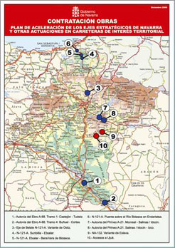 El Gobierno de Navarra, en su sesión de hoy, ha autorizado la contratación de las obras de nueve proyectos de construcción y mejora de carreteras correspondientes a las Autovías del Ebro/A-68  (desdoblamiento de la N-232), Autovía del Pirineo/A-21, así como al eje de Belate (N-121-A) y al Eje Estella-Tafalla-Sangüesa.
