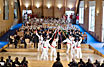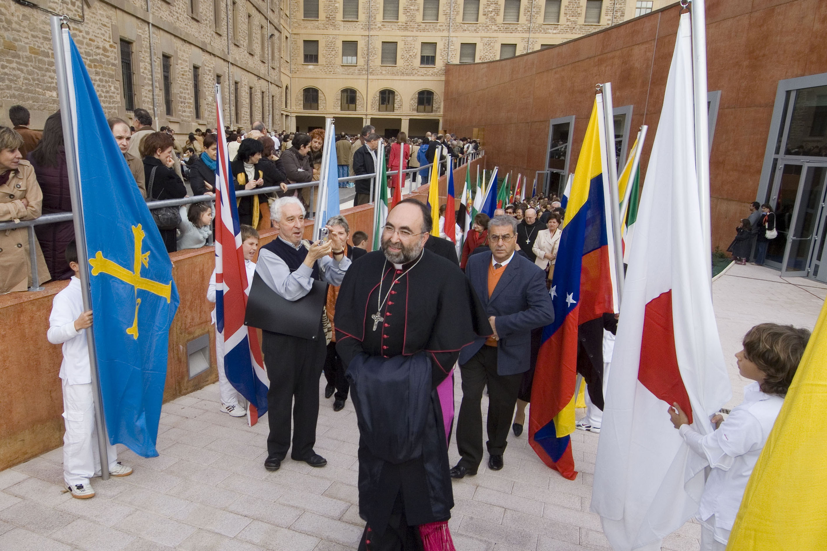 Al final del espectáculo han aparecido portadores de otras tantas banderas de regiones y países de todo el mundo relacionados con Francisco de Javier. Autoridades y público han salido del recinto bajo un arco de honor formado por los portadores de banderas.