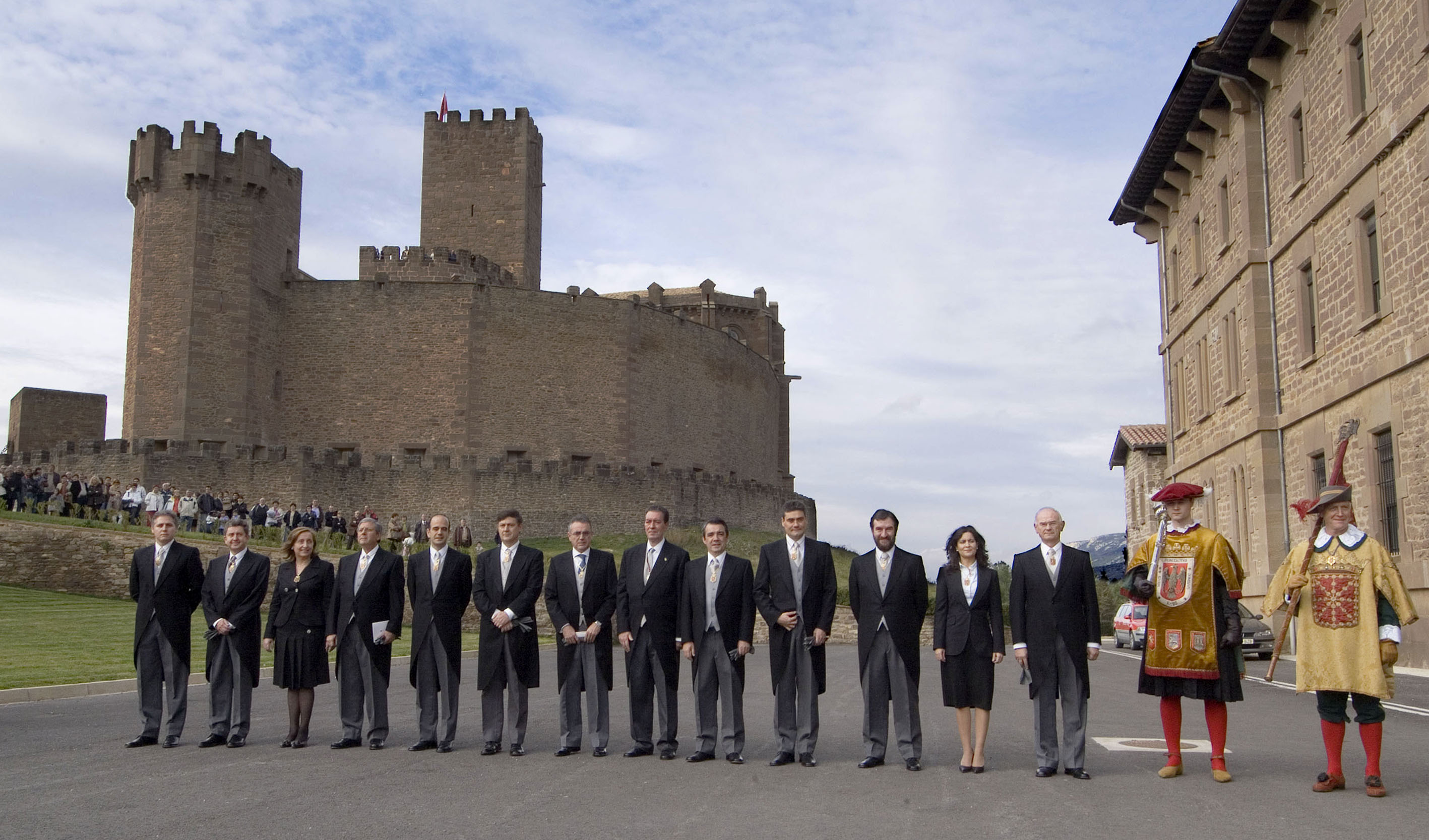 Los miembros del Gobierno de Navarra, posan delante del Castillo de Javier.