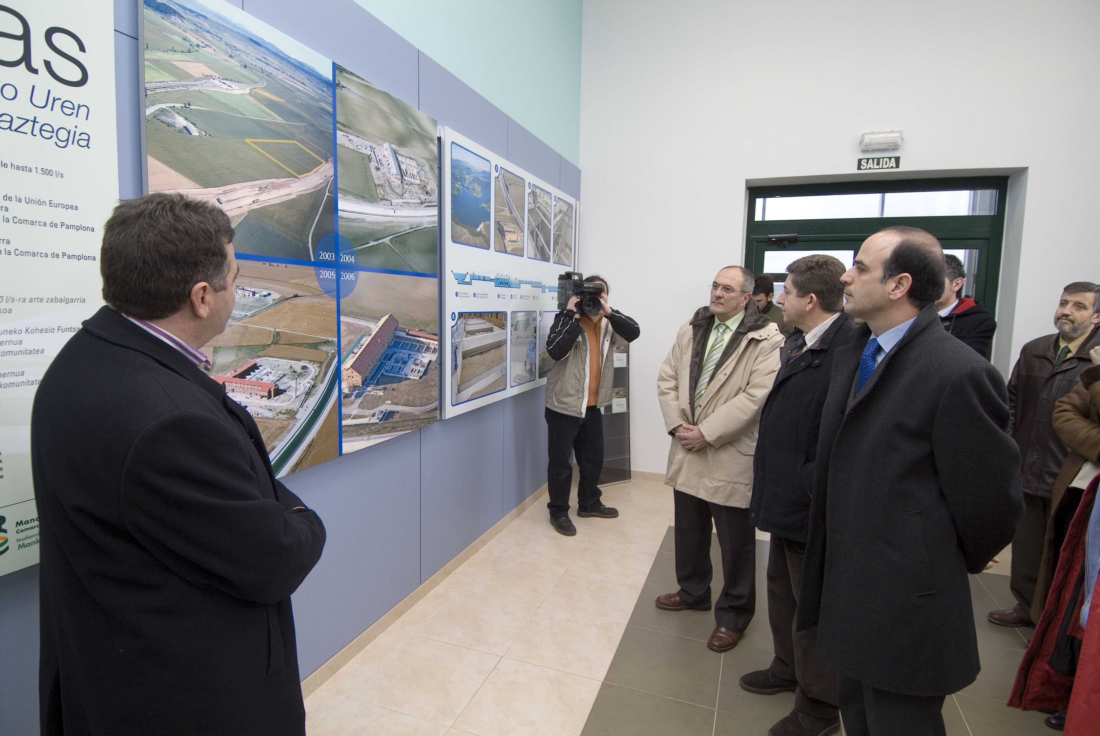 Los consejeros Catalán y Miranda reciben las explicaciones sobre el funcionamiento de la potabilizadora de Tiebas (ampliar imagen)