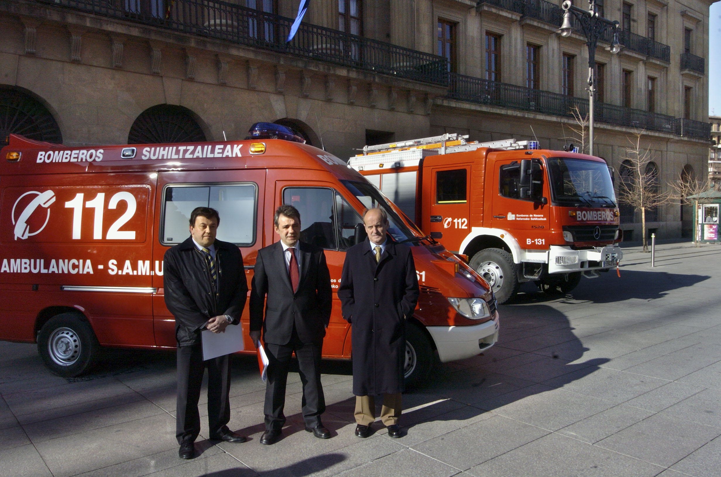 Rábade, Caballero y Vitrián, junto a los dos nuevos vehículos.(ampliar imagen)