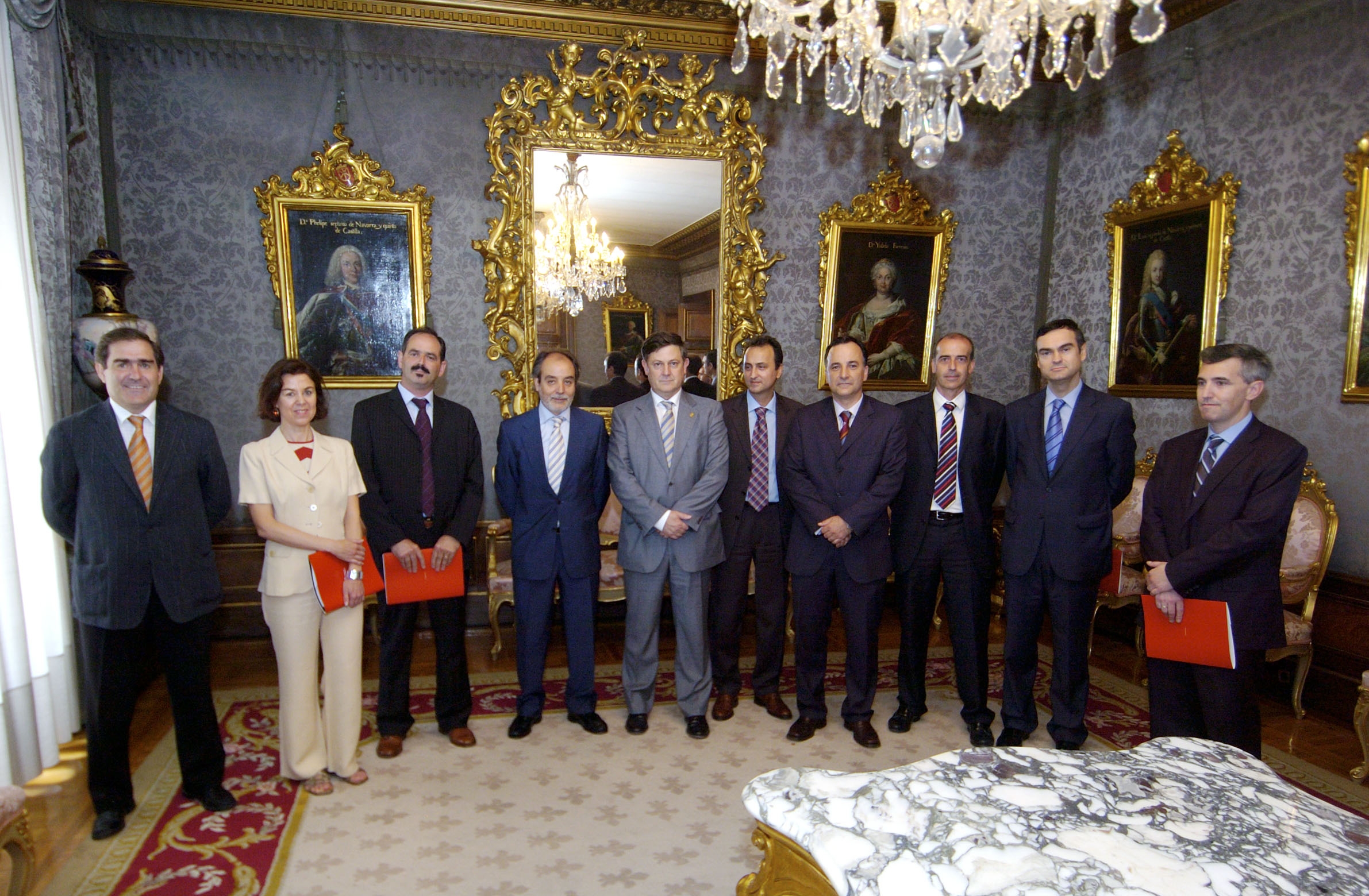 El consejero Iribarren con los técnicos de las dos Haciendas presentes en la firma.