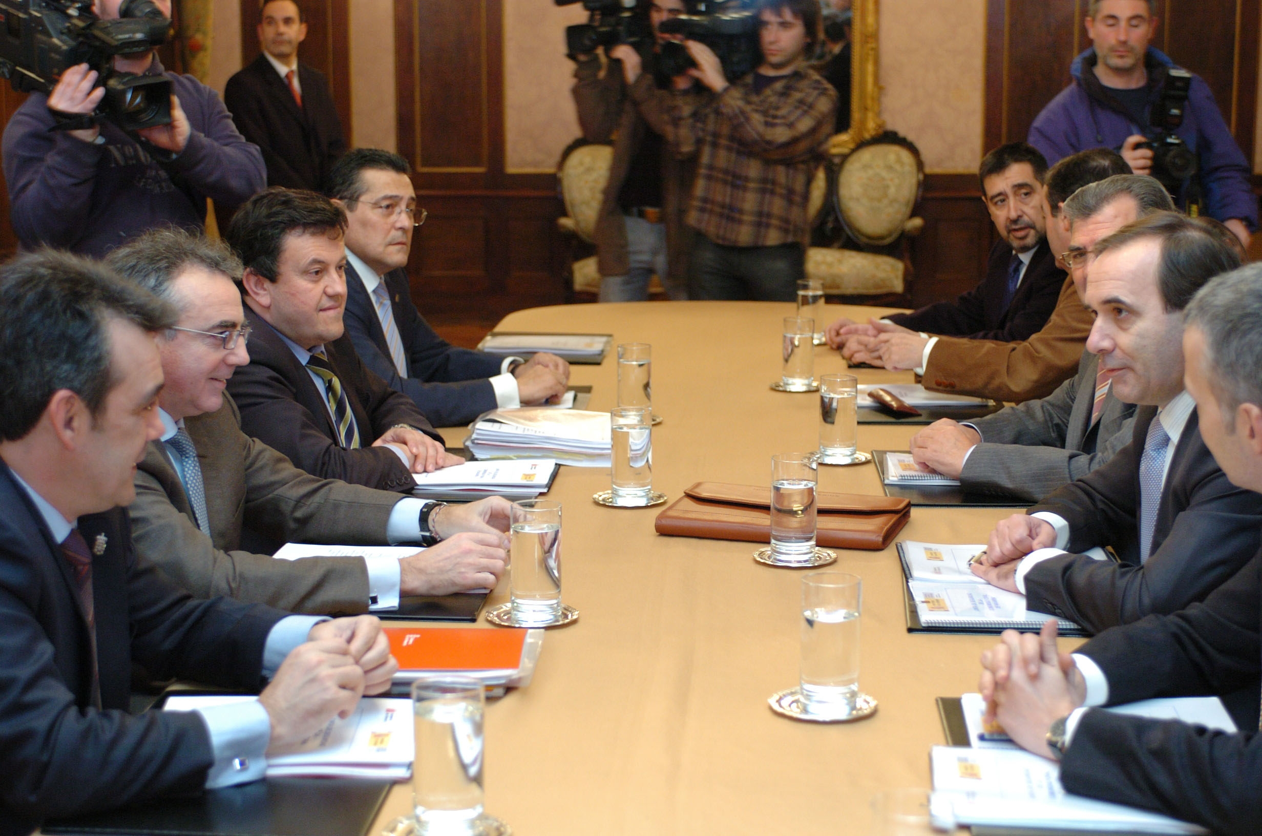 El Presidente del Gobierno de Navarra, Miguel Sanz, y el ministro de Interior, José Antonio Alonso, han presidido esta tarde la sesión constitutiva de la renovada Junta de Seguridad de Navarra, órgano contemplado en el Amejoramiento del Fuero para la coordinación entre la Policía Foral de Navarra y los Cuerpos y Fuerzas de Seguridad del Estado en materia de seguridad pública.