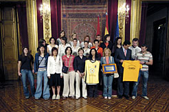 martes, 20 de junio de 2006La consejera de Bienestar Social, Deporte y Juventud, María Isabel García Malo, ha ofrecido esta mañana en el Salón del Trono del Palacio de Navarra, una recepción oficial a las jugadoras y cuadro técnico del equipo femenino de fútbol “Lagunak” de Barañáin, recientemente proclamadas subcampeonas de la Copa de Su Majestad la Reina.