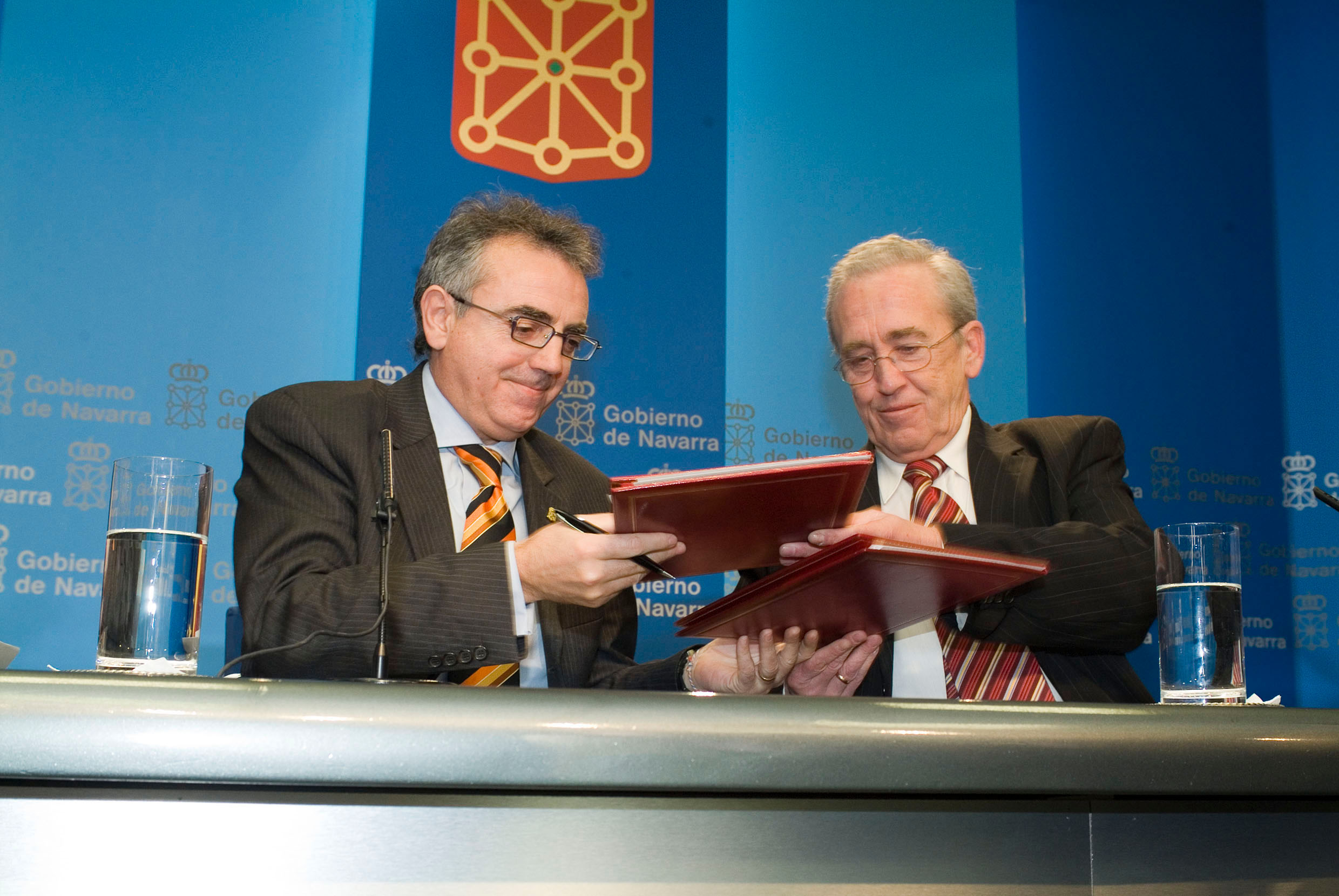 El Presidente del Gobierno de Navarra, Miguel Sanz Sesma, y el rector de la UPNA, Pedro Burillo López, han firmado esta mañana el Convenio para la financiación de la Universidad Pública de Navarra durante el periodo 2006-2008, en el que se contempla una aportación económica de la Administración de la Comunidad Foral por un importe total de 181,1 millones de euros para el conjunto del trienio.