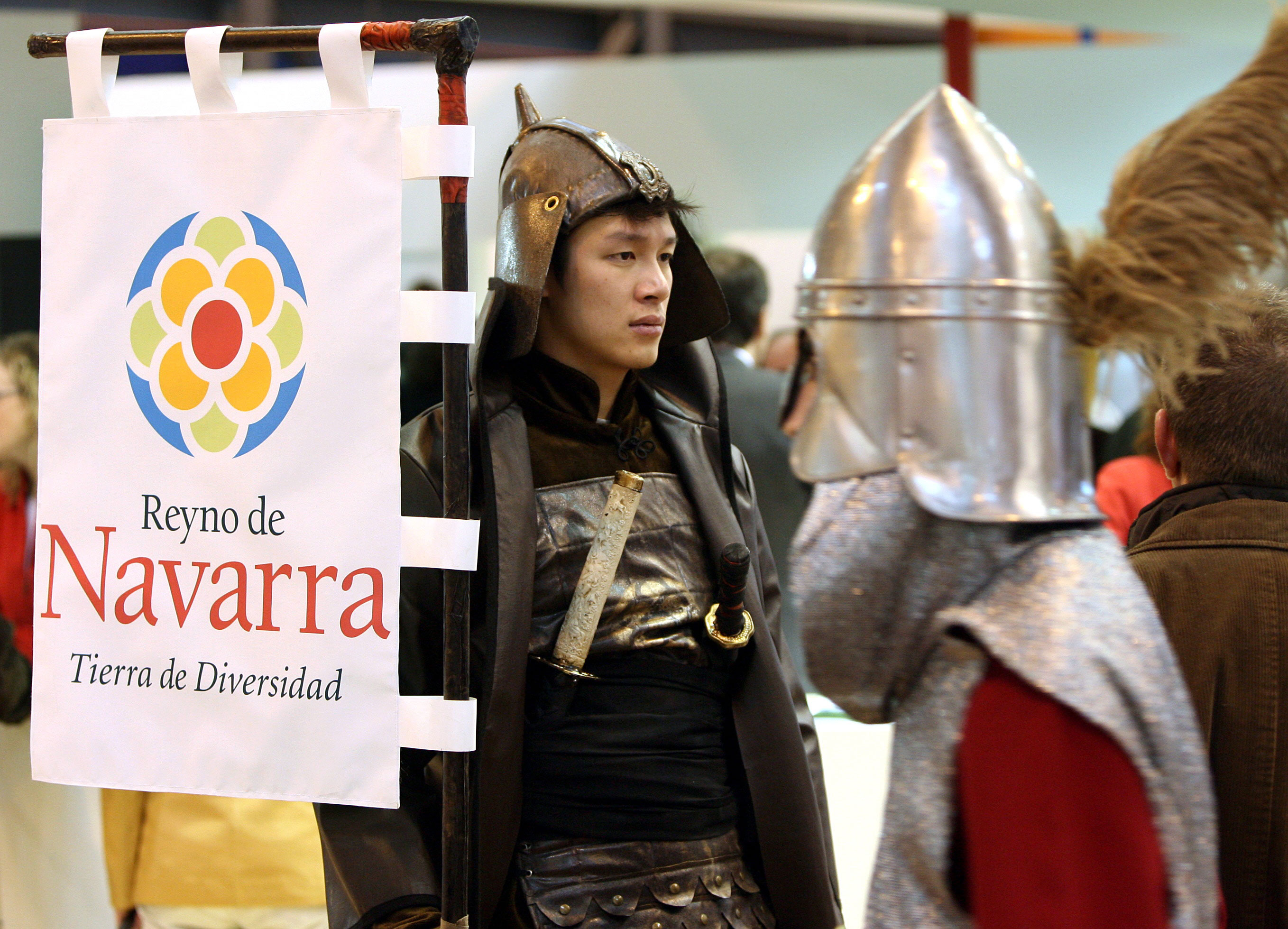 Actores ataviados de guerreros, durante el acto del stand de Navarra en Fitur.(ampliar imagen)