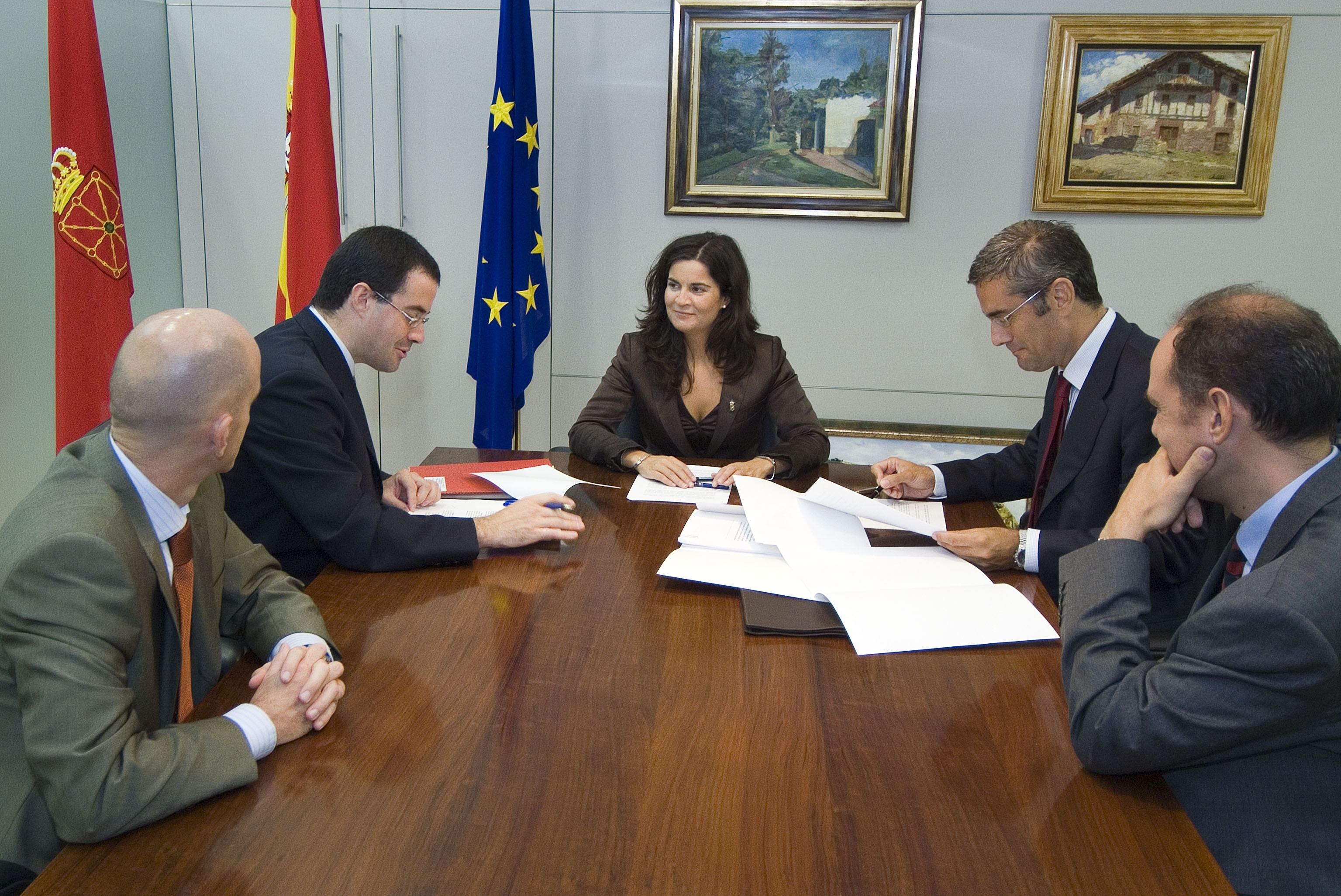 Firma del contrato. De izda a dcha: Iribas, la consejera García Malo y Asensio.