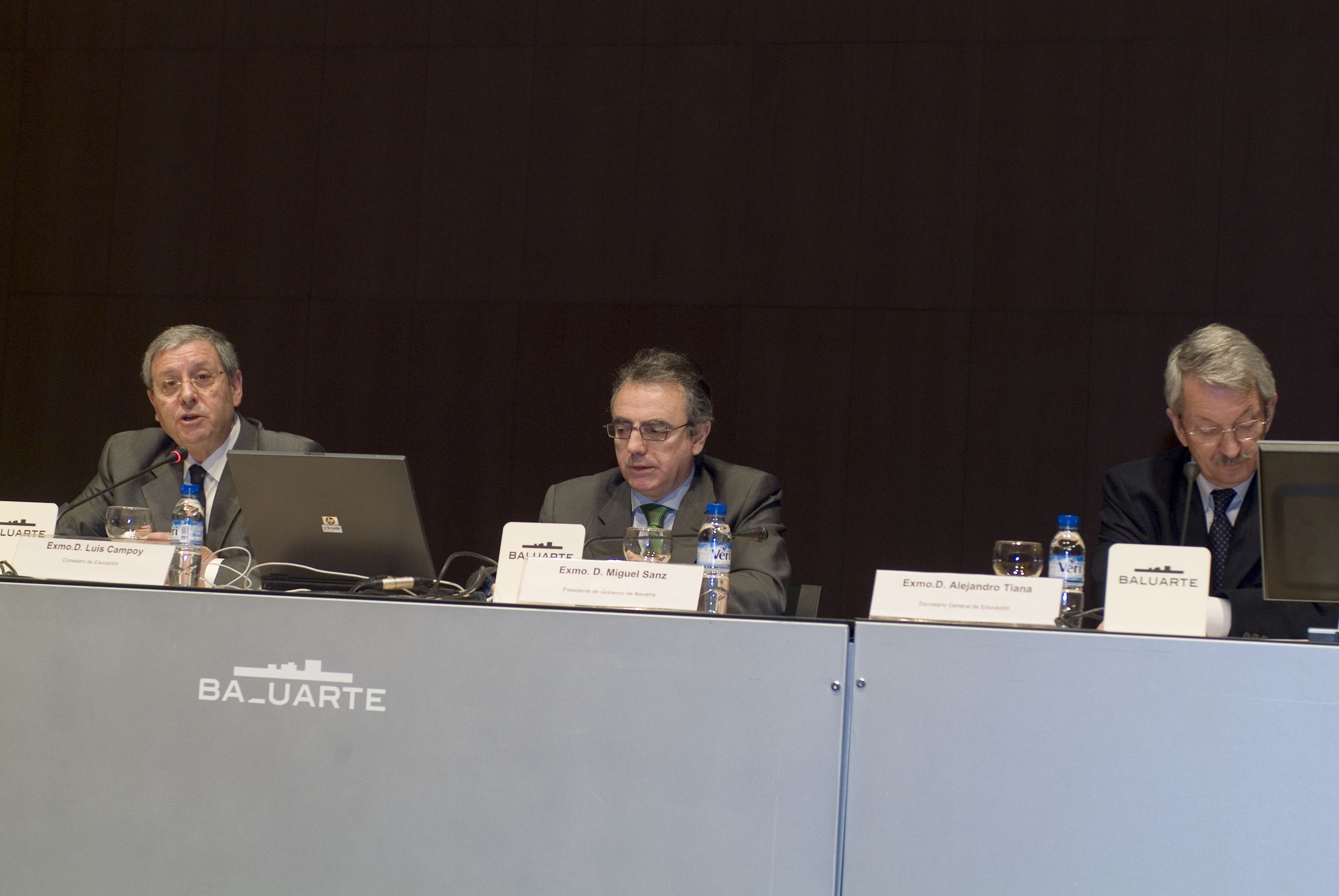 La primera jornada se dedica a estudiar qué le pide la sociedad a la escuela hoy. El acto de apertura oficial ha contado con las intervenciones del consejero de Educación, Luis Campoy Zueco; el secretario general de Educación, Alejandro Tiana, y el Presidente del Gobierno de Navarra, Miguel Sanz Sesma,