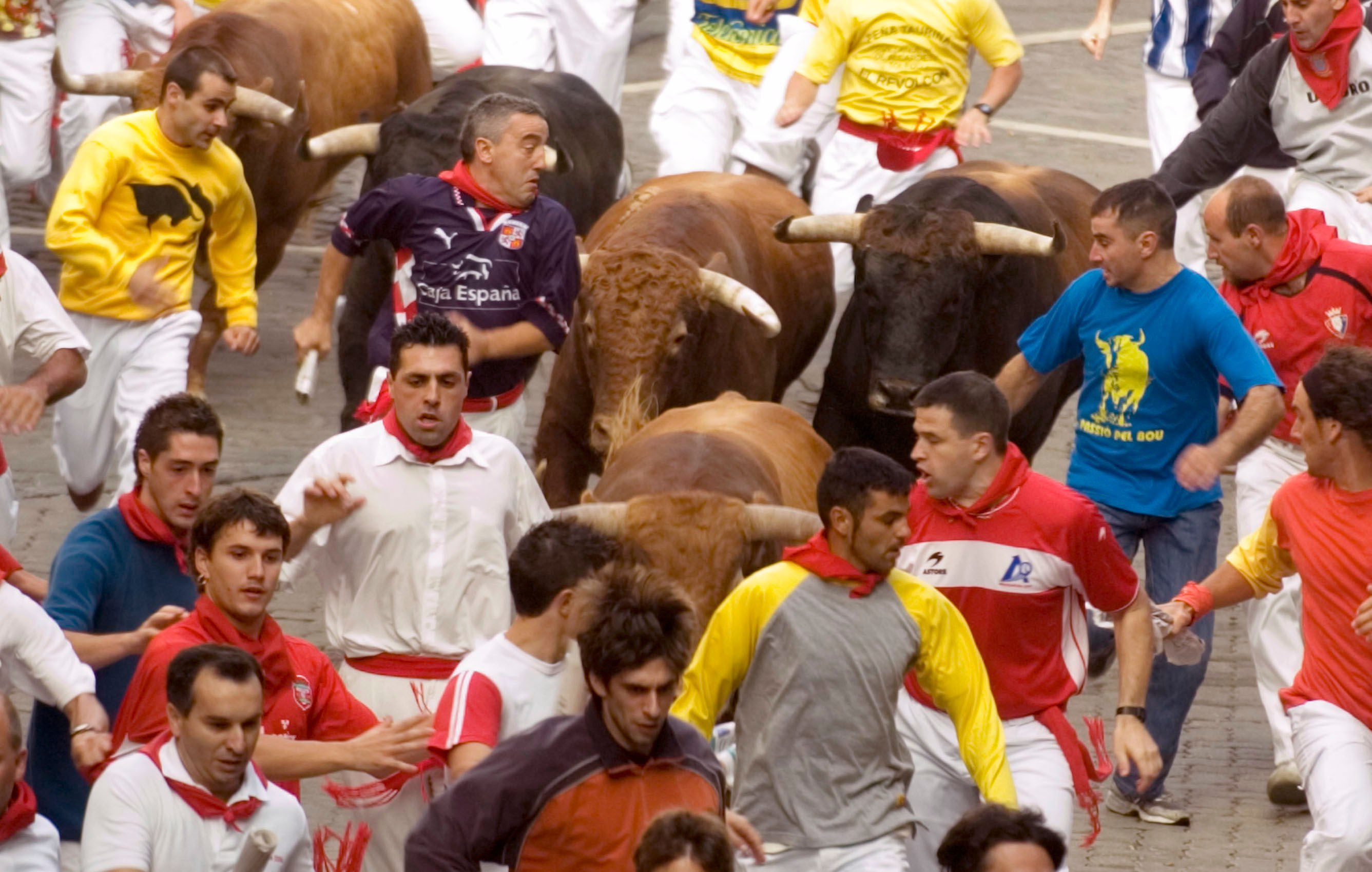 El cuarto encierro de San Fermín se salda con dos heridos, uno de ellos por asta de toro