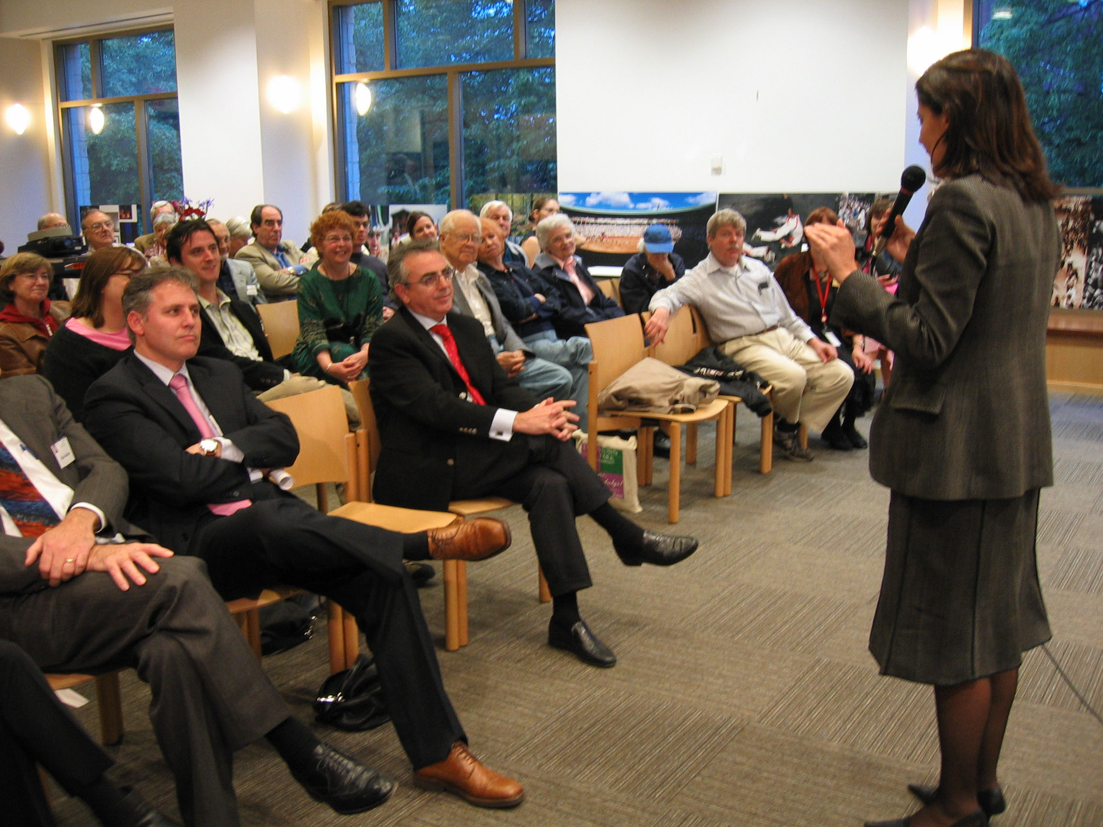 La alcaldesa Yolanda Barcina inaugurando la exposición "Navarra Alive" en Oak Park, la ciudad natal de Ernest Hemingway. ( ampliar imagen )