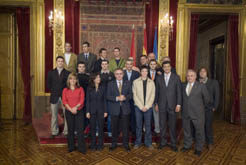 El Presidente Sanz, junto a los pelotaris y federativos. (ampliar imagen)