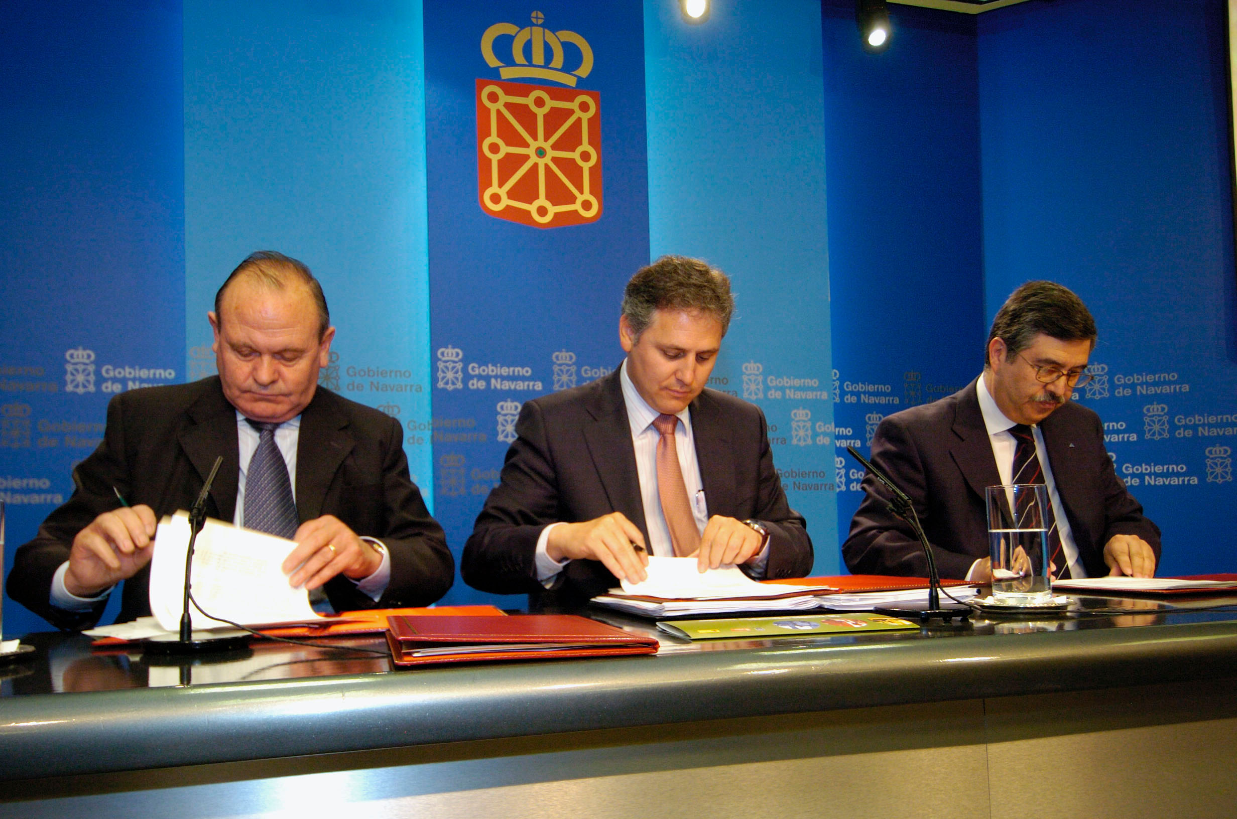 Un momento de la firma del convenio. De izda a dcha: José Ignacio Alonso, el consejero Armendáriz y Ignacio Mosso.