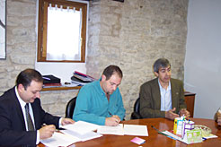 jueves, 25 de mayo de 2006El jefe de la Sección de Tráfico, Educación y Seguridad Vial de la Dirección General de Interior, Ángel Iturralde García, el representante de Fundación Mapfre Jesús Garrido Ostiategui y el alcalde de Etxauri, Luis Baquedano Ros, han firmado esta mañana un acuerdo por el que se le hace entrega a esta localidad de una marquesina para uso escolar.