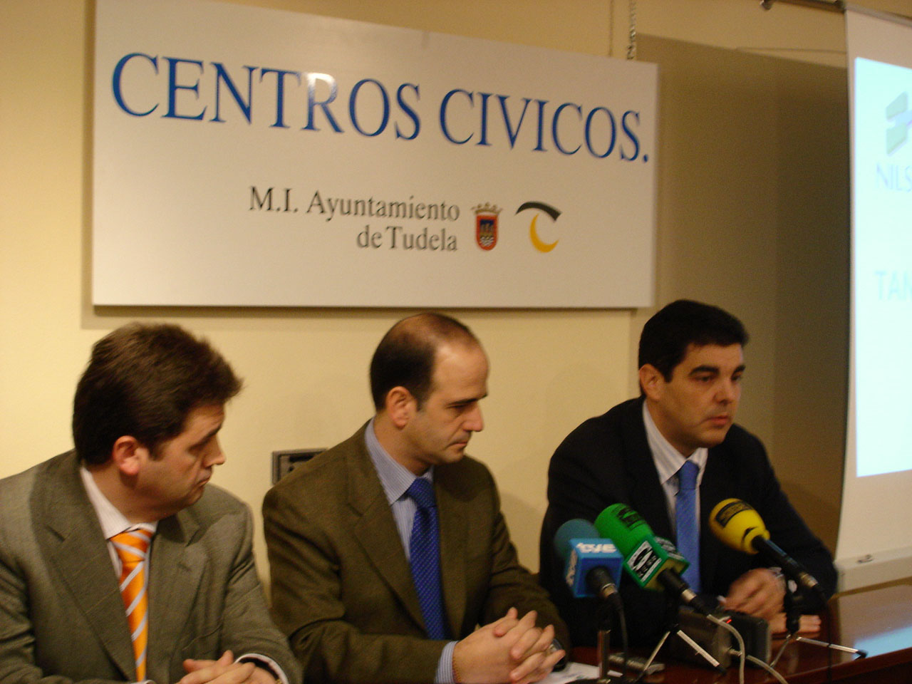 El consejero Catalán con el director gerente de NILSA, Andrés Sola, y el alcalde de Tudela, Luis Casado.