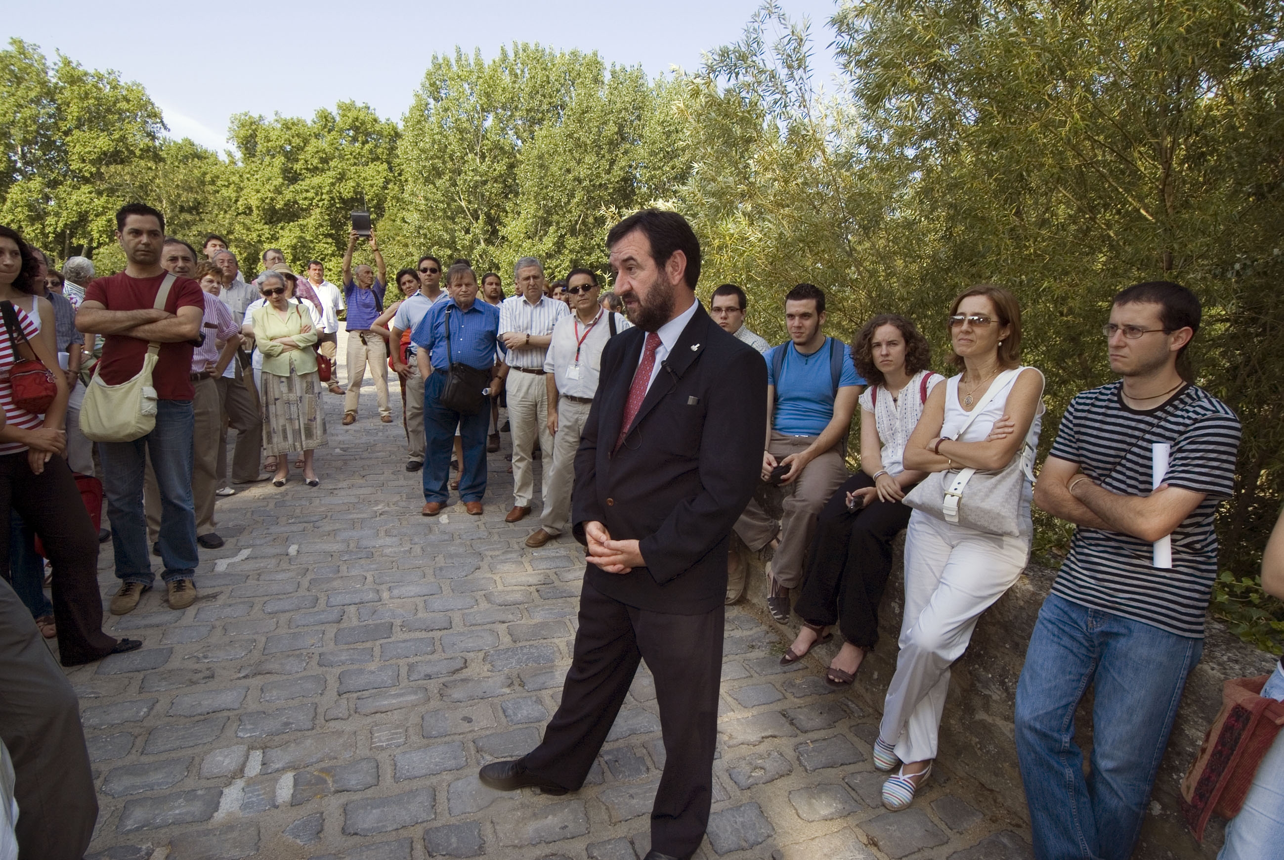 miércoles, 19 de julio de 2006Los participantes en la XXIII edición de la Semana de Estudios Medievales de Estella han visitado a lo largo de la jornada de hoy la ciudad de Pamplona. El grupo, compuesto por semanistas, ponentes y miembros del Comité Científico de la Semana, ha sido recibido por el consejero de Cultura y Turismo, Juan Ramón Corpas Mauleón, en el puente de la Magdalena.