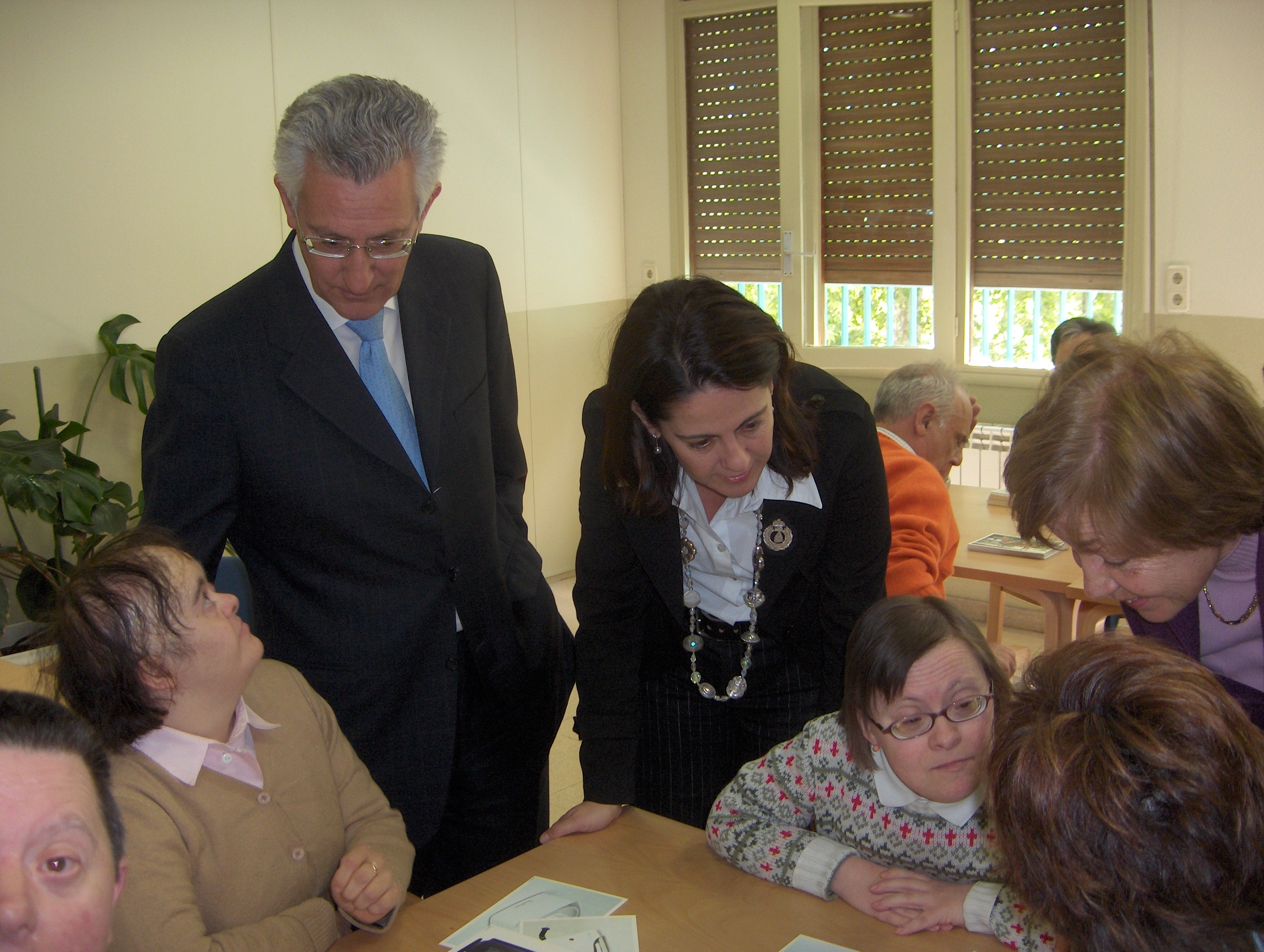 El consejero Palacios y la alcaldesa Barcina, conversan con un grupo de personas del Centro. (ampliar imagen)