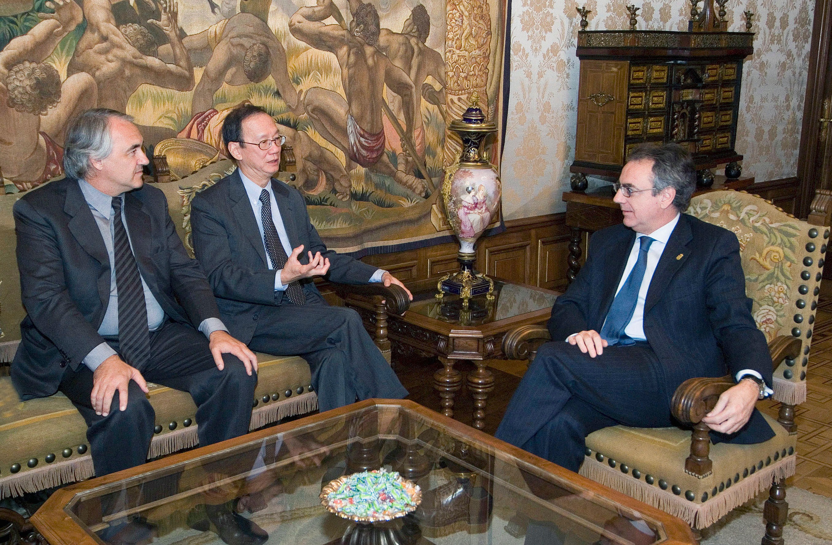 Imagen de la reunión mantenida este mediodía entre el Presidente Sanz, el embarjado Chew (en el centro) y el cónsul honorario Alfonso Vegara.