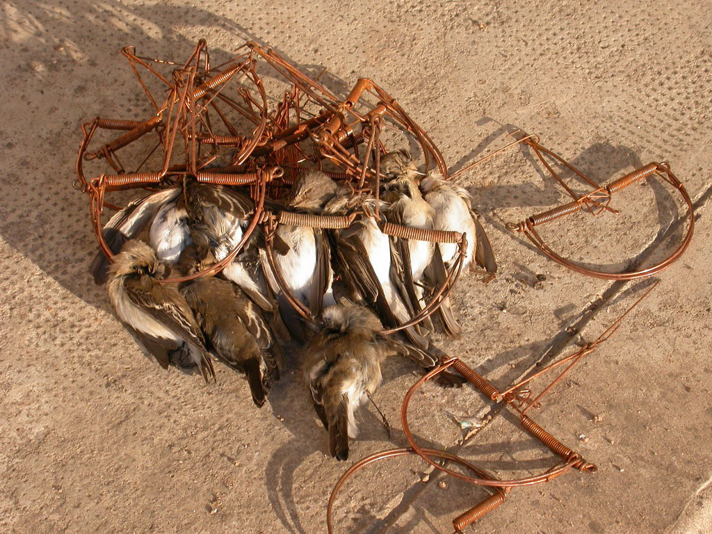 Imagen de los cepos y los pájaros intervenidos.(ampliar imagen)