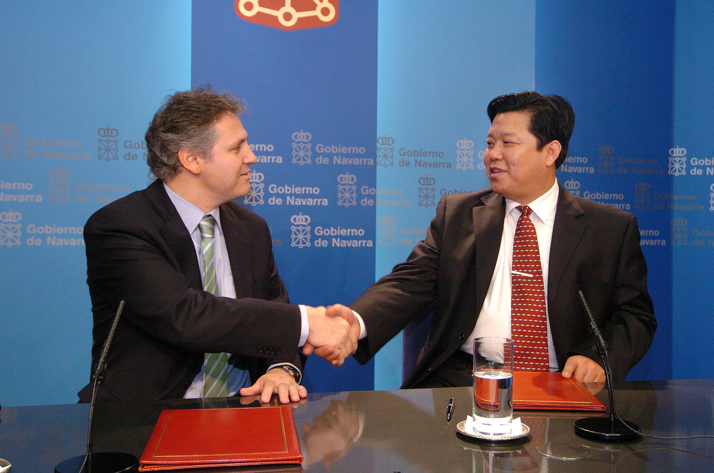 El consejero Armendáriz y el vicealcalde de Liaocheng, tras la firma del convenio.(ampliar imagen)