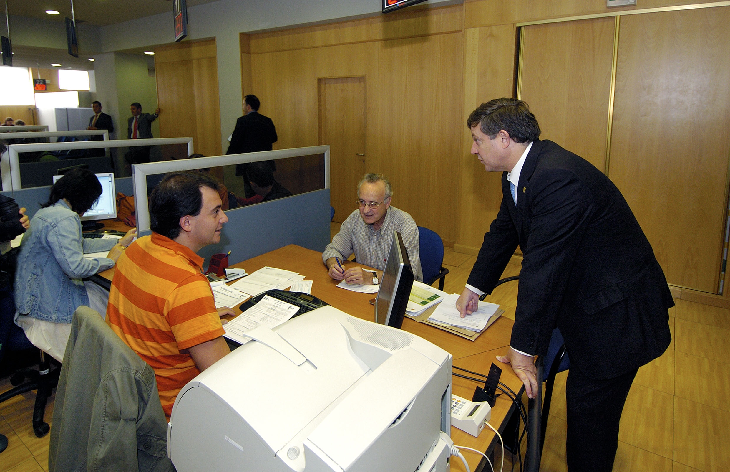 El vicepresidente Iribarren habla con un contribuyente que hace su declaración en la oficina de Hacienda.