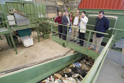 El consejero Catalán observa otro momento del proceso, que separa la materia orgánica de los residuos inertes.(ampliar imagen)