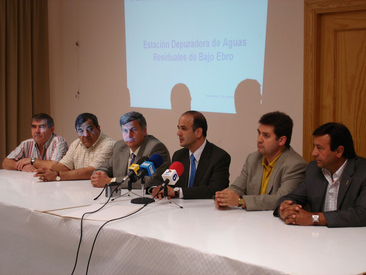 El consejero Catalán con los responsables municipales de la localidades afectadas por le EDAR Bajo Ebro y los responsables de NILSA(ampliar imagen)