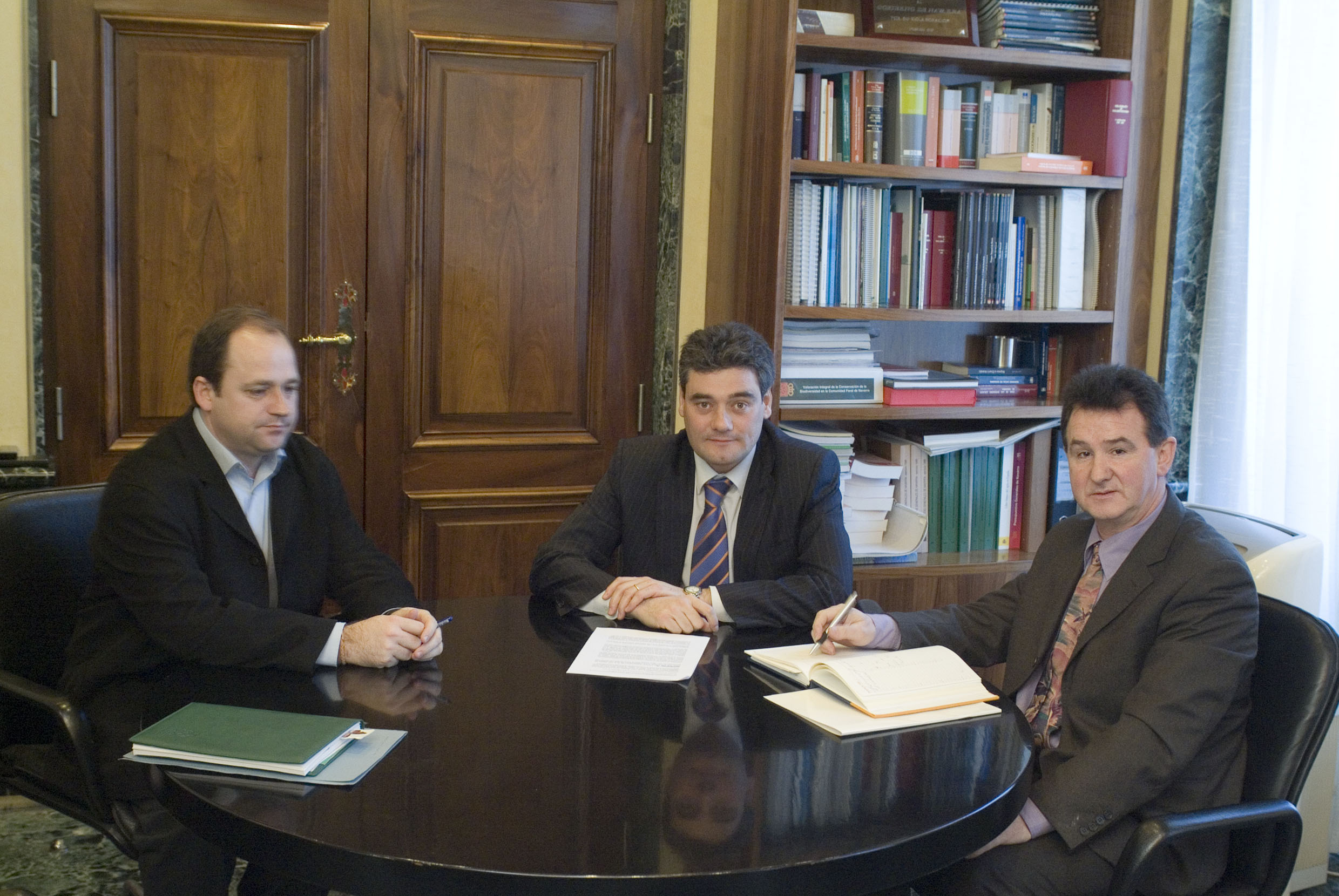 El consejero Burguete (centro), con el presidente de la Federación de Caza.
