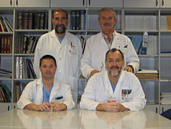 Parte de los autores del trabajo. De izda. a dcha.:sentados, los doctores Sanz y Trujillo. De pie, los doctores Domínguez Cunchillos y Apesteguía. ( ampliar imagen )