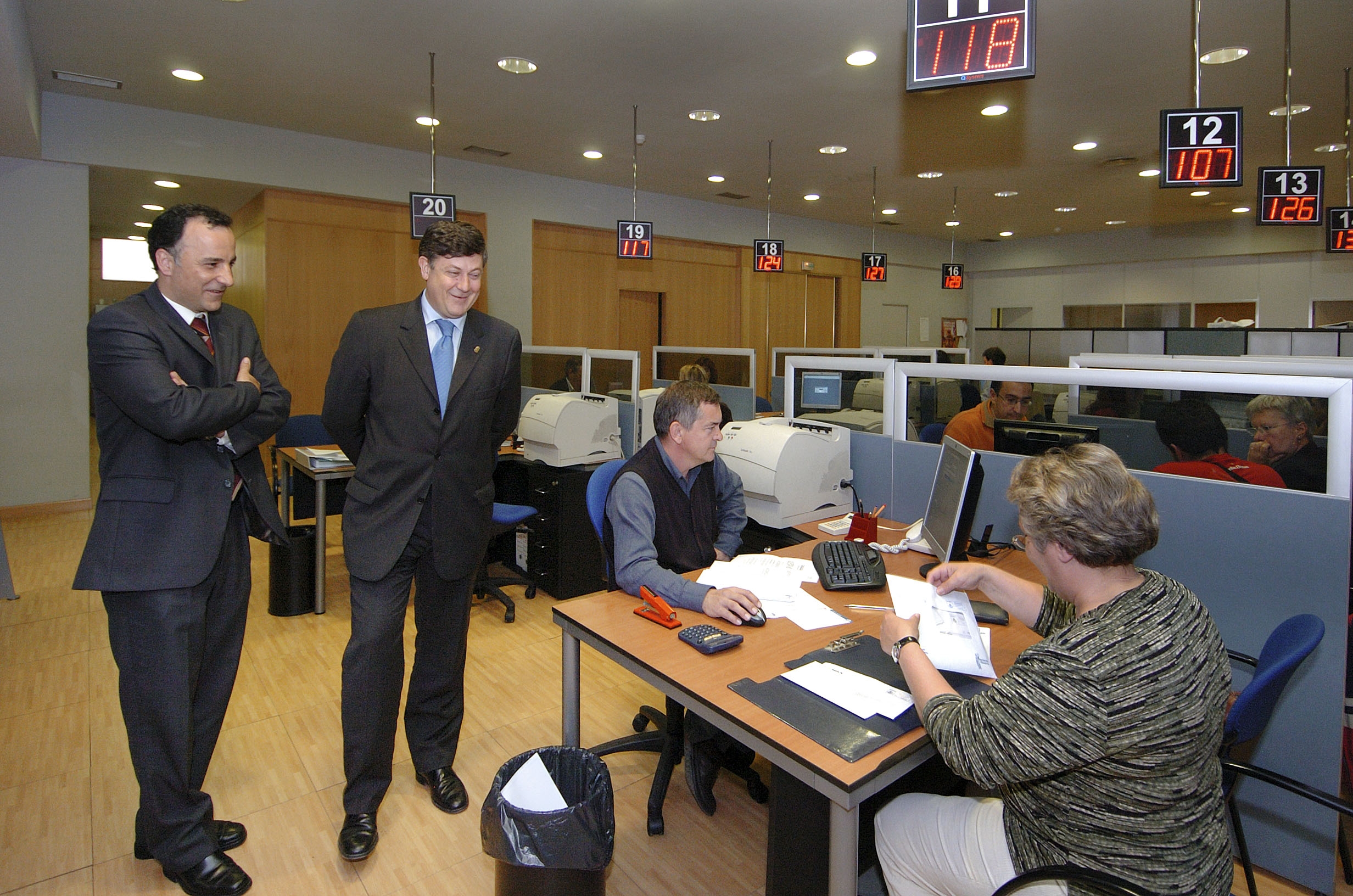 El Vicepresidente Iribarren y el director gerente de Hacienda, José Ignacio Pérez de Albéniz, en la oficina de declaraciones de renta. ( ampliar imagen )