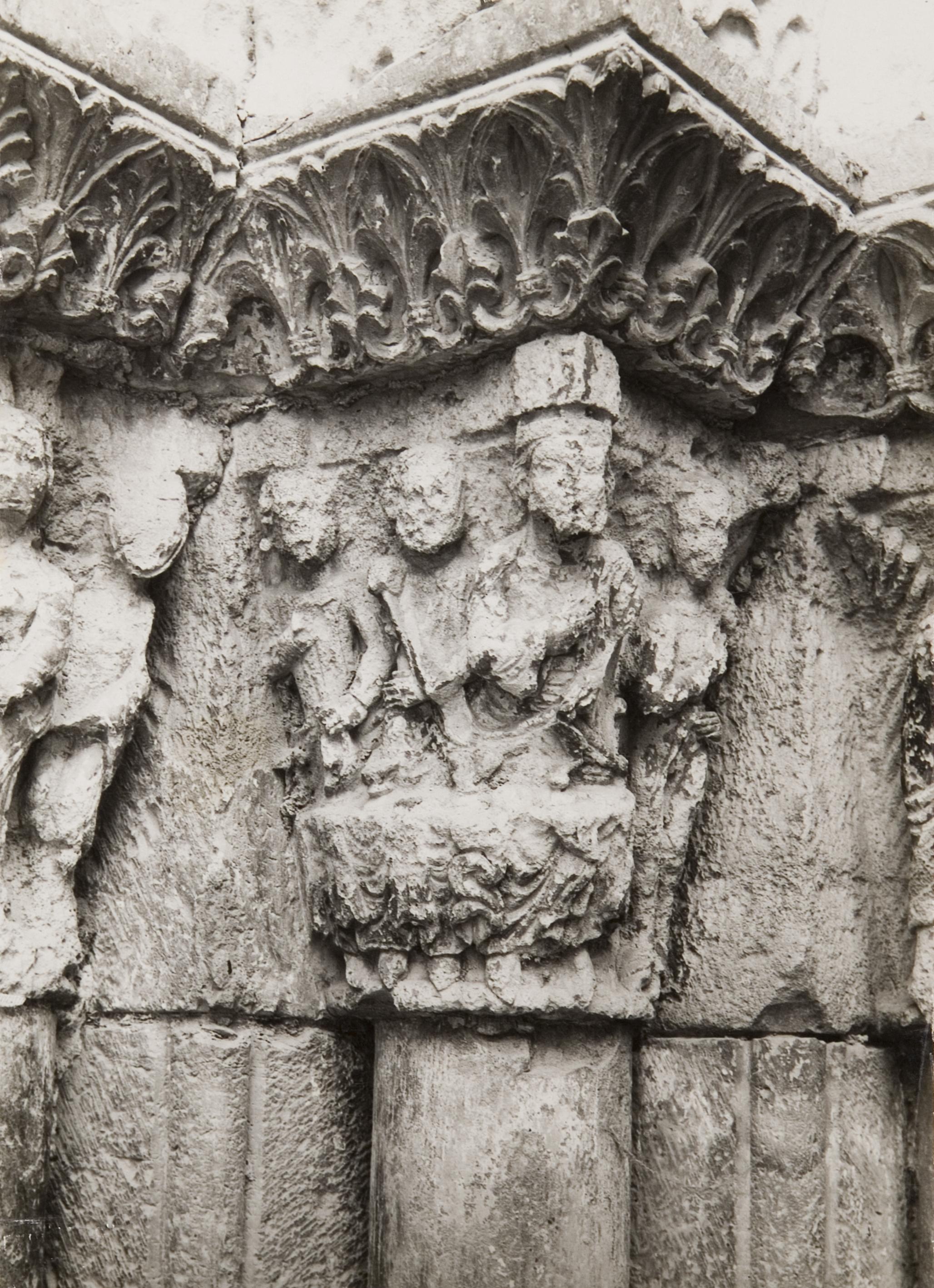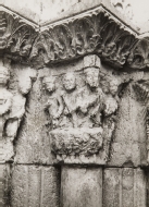 Catedral de Santa María de Tudela. Puerta de Santa María, capitel del banquete de Herodes y la danza de Salomé.