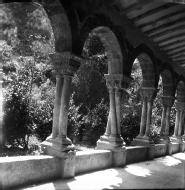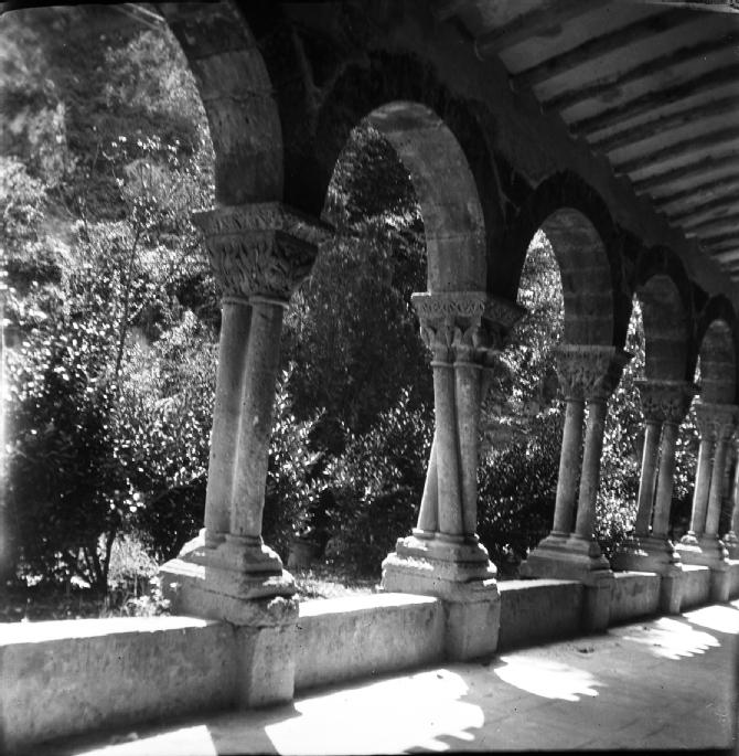 • Contenido: Vista de los arcos de la crujía oeste del claustro de la iglesia de San Pedro de la Rúa en Estella.