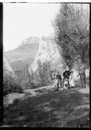 Excursión de la familia Altadill Aldave a Irurzun. Excursionistas ante el paso de las Dos Hermanas.