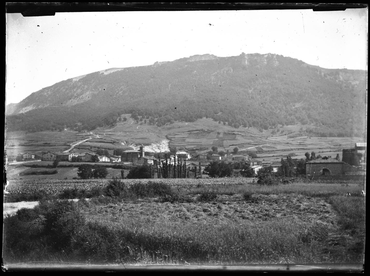 Julio Altadill regresó a Navarra tras servir como profesor en la Academia del Cuerpo Administrativo del Ejército de Ávila hasta 1891. La imagen se reprodujo en una publicación en 1918 con el pie de imagen: "Bacaicoa. Vista general de la población y la sierra de Urbasa".