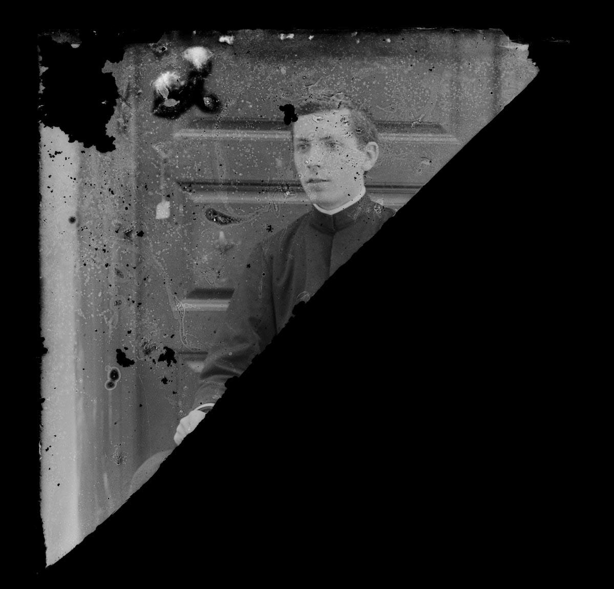 • Notas: Fragmento de placa de vidrio con pérdidas de la capa de emulsión, muy deteriorada.