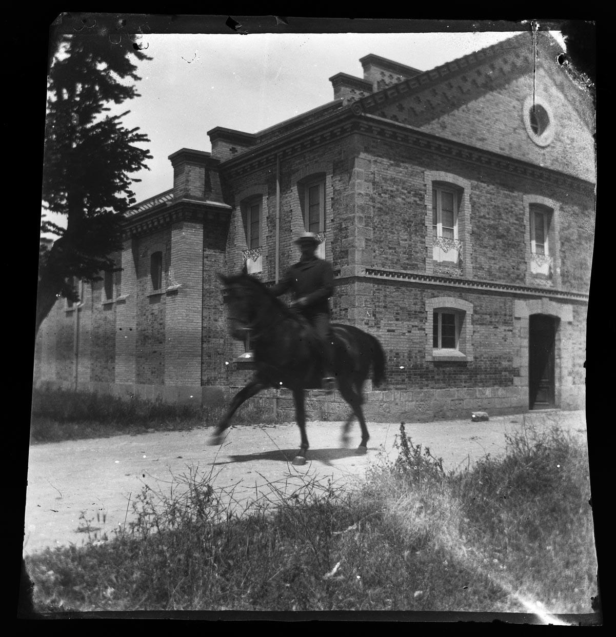 Jinete delante del picadero cubierto de la ciudadela de Pamplona.