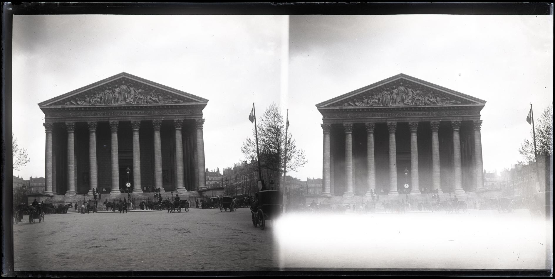 • Contenido: Vista de la fachada de la iglesia de la Madeleine de París, tomada desde el sur en la Rue Royal.