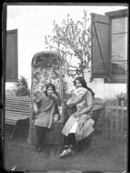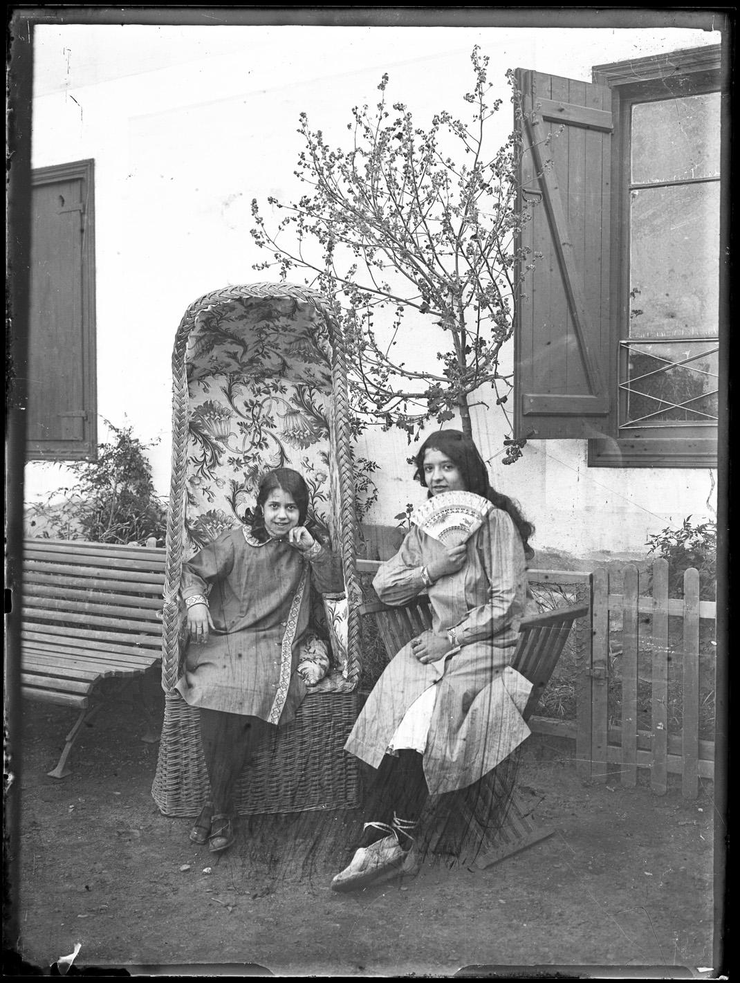 María Altadill Aldave con una amiga sentadas en el jardín de "Garden House", la casa de recreo familiar situada en el paraje de La Magdalena en Pamplona.