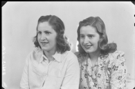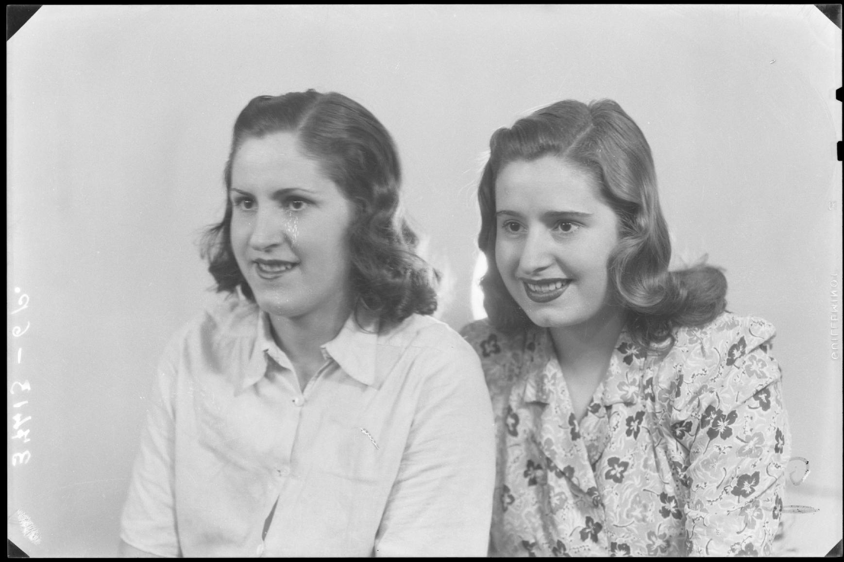 Retrato de estudio en plano medio corto de una pareja de muchachas con blusas.