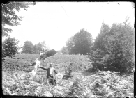 Veraneo de la familia Altadill Aldave en Burguete. Hombre en el helechal de un bosque de hayas.