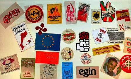 Esta colección comprende más de cien pegatinas de partidos políticos, sindicatos, agrupaciones culturales y movimientos ciudadanos de los años de la Transición, lo que permite conocer y comprender mejor los cambios que se produjeron en la sociedad navarra entre los años 1975 y 1980.